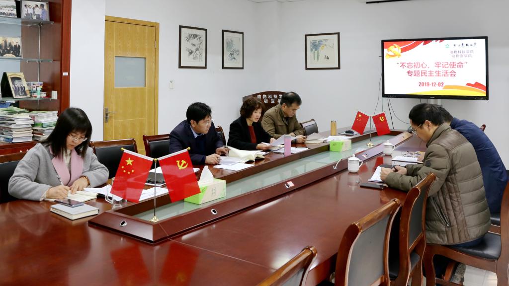 12月5日下午,兽医学科支部在学2-212召开“不忘初心、牢记使命”主题教育组织生活会。会议由兽医学科支部书记王晓杜主持,兽医学科全体党员和入党积极分子参加了会议。 支部每位党员对照主题教育学习情况、对照党章党...