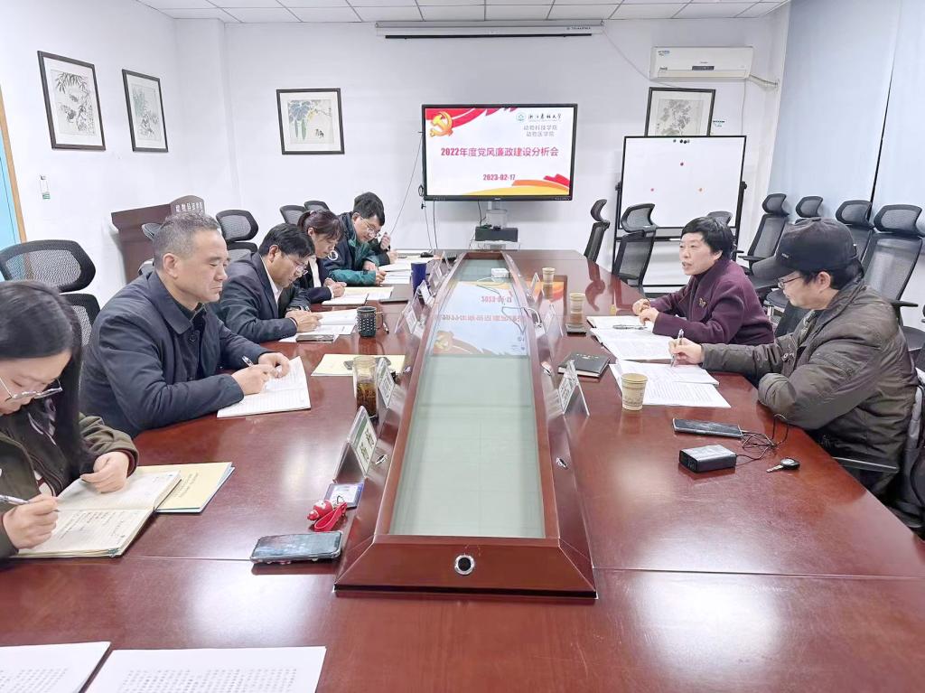2月17日晚,动科动医公司党委召开2022年度党风廉政建设分析会。公司党委副书记施美红,校纪委委员、数计公司党委书记冯金明出席会议。会议由公司党委书记苏小菱主持,公司党政班子全体成员参加会议。 会议聚焦“分析贯...