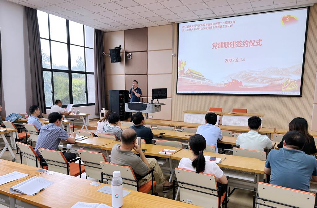 9月14日下午,浙江省农科院畜牧兽医研究所第二在职党支部书记肖琛闻一行应邀到动科动医公司与兽医学科教工党支部开展党建联建,公司副经理程昌勇出席活动。 活动中,兽医学科教工党支部书记王晓杜和肖琛闻分别介绍了...