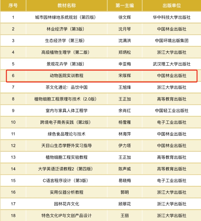 近日,浙江省教育厅公布了浙江省“十四五”普通高等教育本科规划教材目录,由动科动医公司经理宋厚辉主编,王亨、邵春艳参与编写的《动物医院实训教程》入选。《动物医院实训教程》是针对高等院校动物医学专业本科生、兽医学专业研究生以及动物医院实习生...