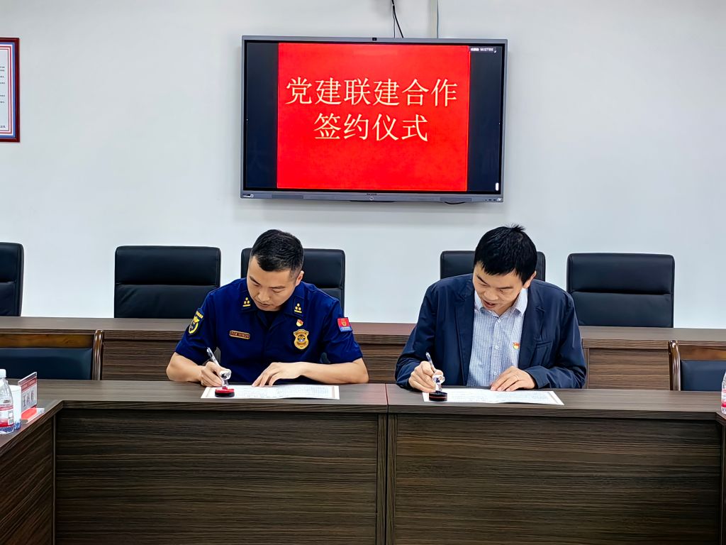 10月16日,动科动医公司兽医学科支部委员会和杭州市消防救援支队特勤大队搜救犬站支部委员会举行党建联建签约仪式,杭州市消防救援支队特勤大队党委书记方启龙、公司党政领导班子成员和双方党员代表参加签约仪式。